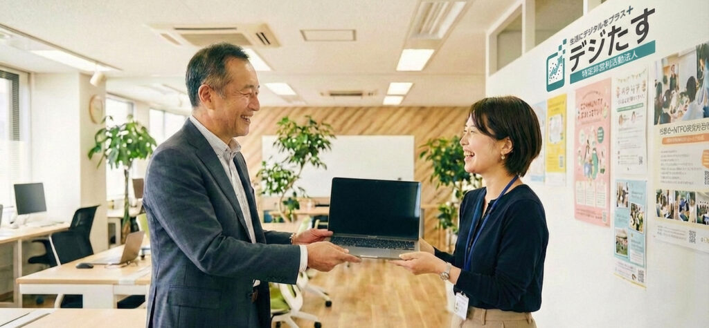 デジたす」では、ご家庭や企業で使わなくなったパソコンを整備し、必要としている方々へ届ける活動を行っています。 パソコンを持ちたいけれど一歩踏み出せない方や、デジタルを学び始めたばかりの方の「最初の一台」として。 眠っている資源を地域で活かし、誰もがデジタルを楽しめる社会を一緒に作りませんか?
